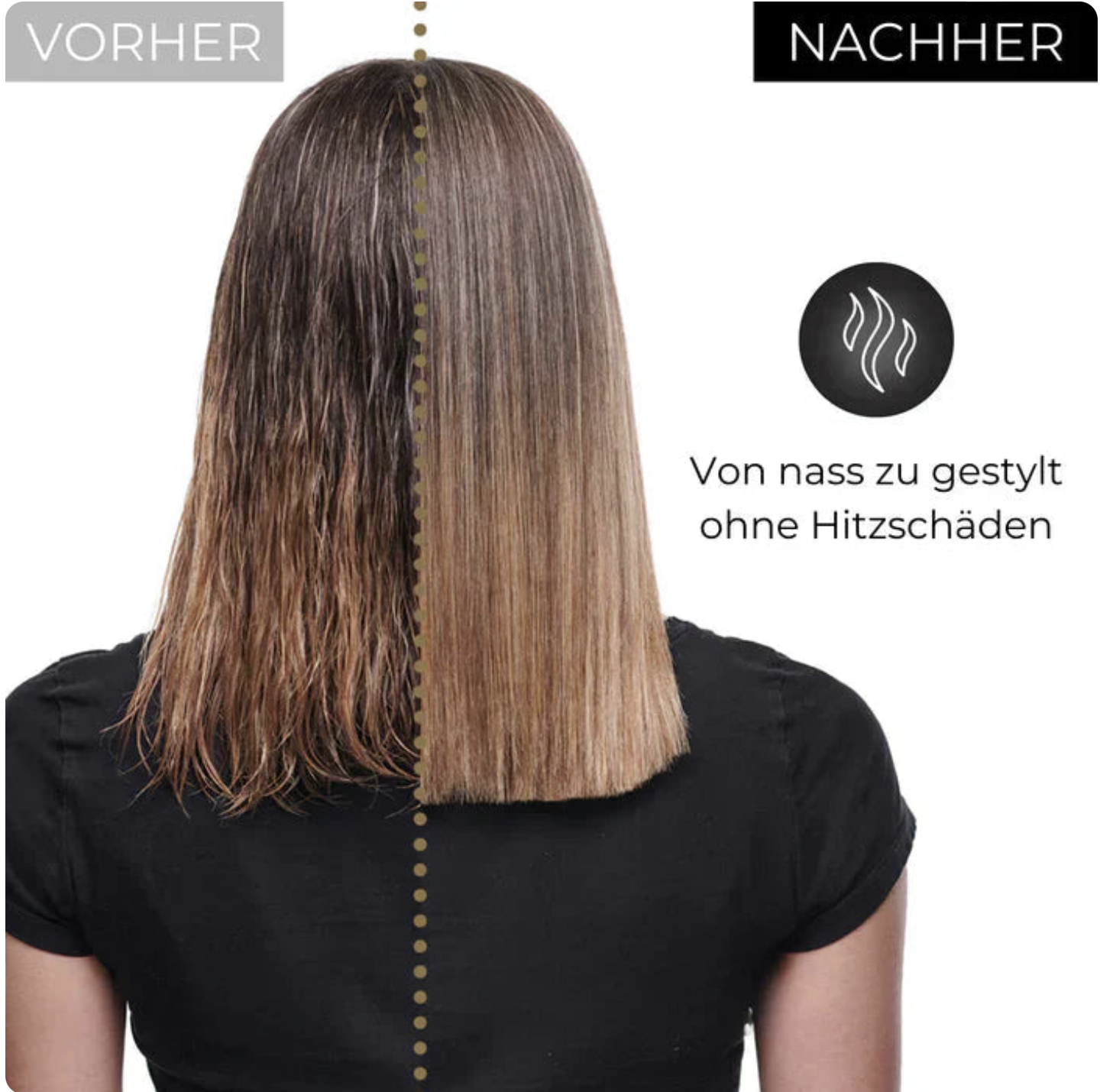 Wer morgens wenig Zeit hat, kämpft oft mit langen Prozess aus Föhnen und Glätten. Dabei leidet das Haar unter ständiger Hitze, was zu Spliss und Haarbruch führt. Das Styling wird mühsam und die Haare verlieren an Glanz und Vitalität.